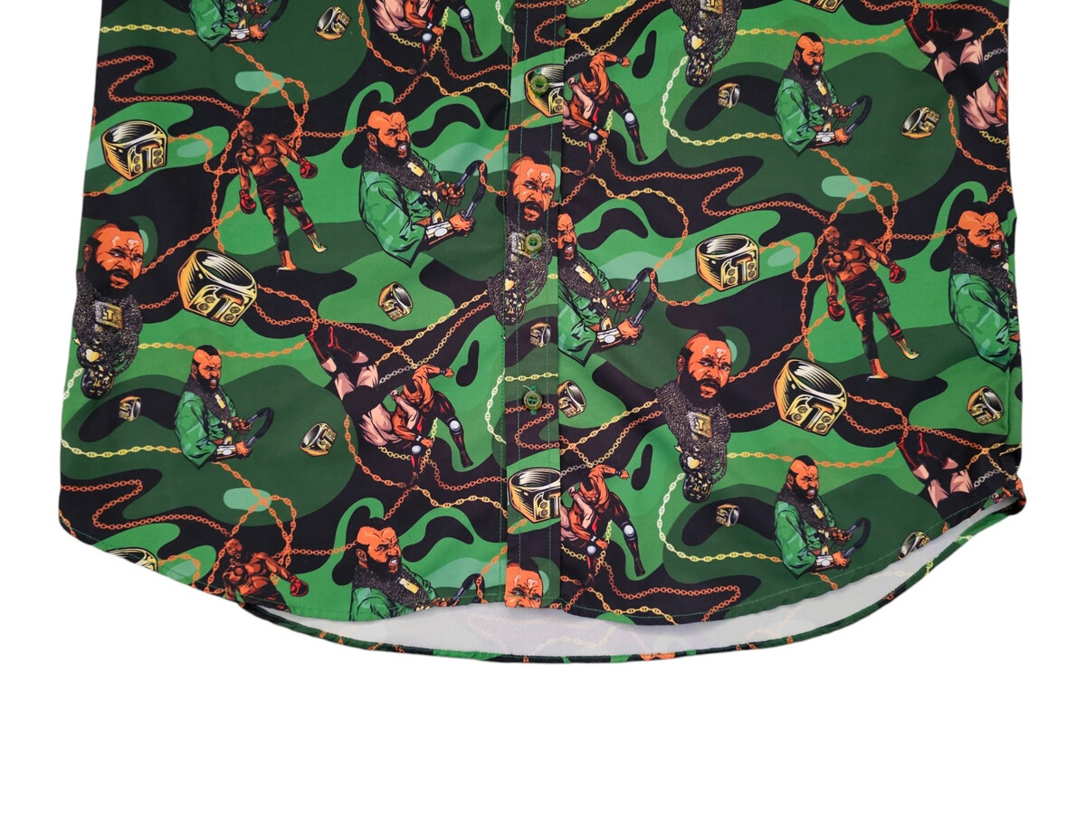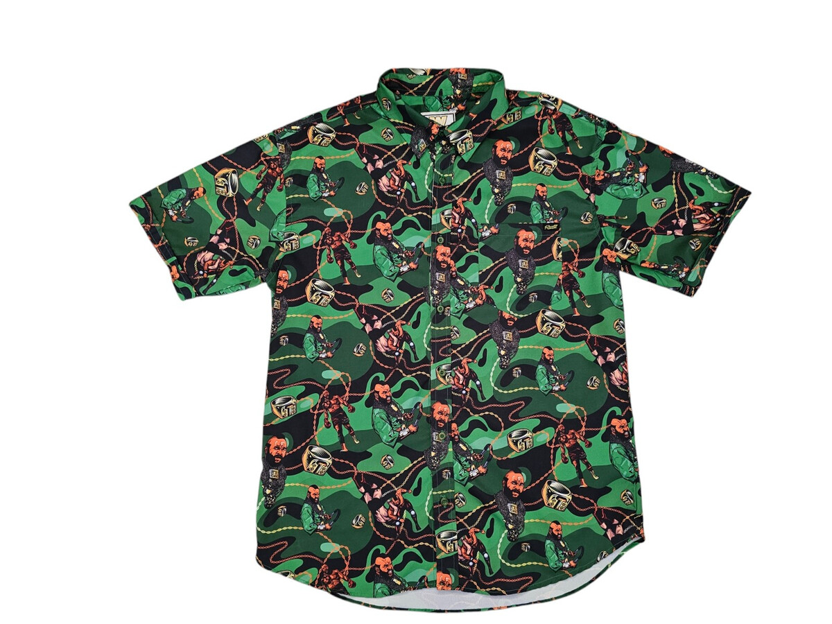 RSVLTS WWE Mr. T "Pity The Fool " KUNUFLEX Gren Camo Short Sleeve Shirt Sz Large