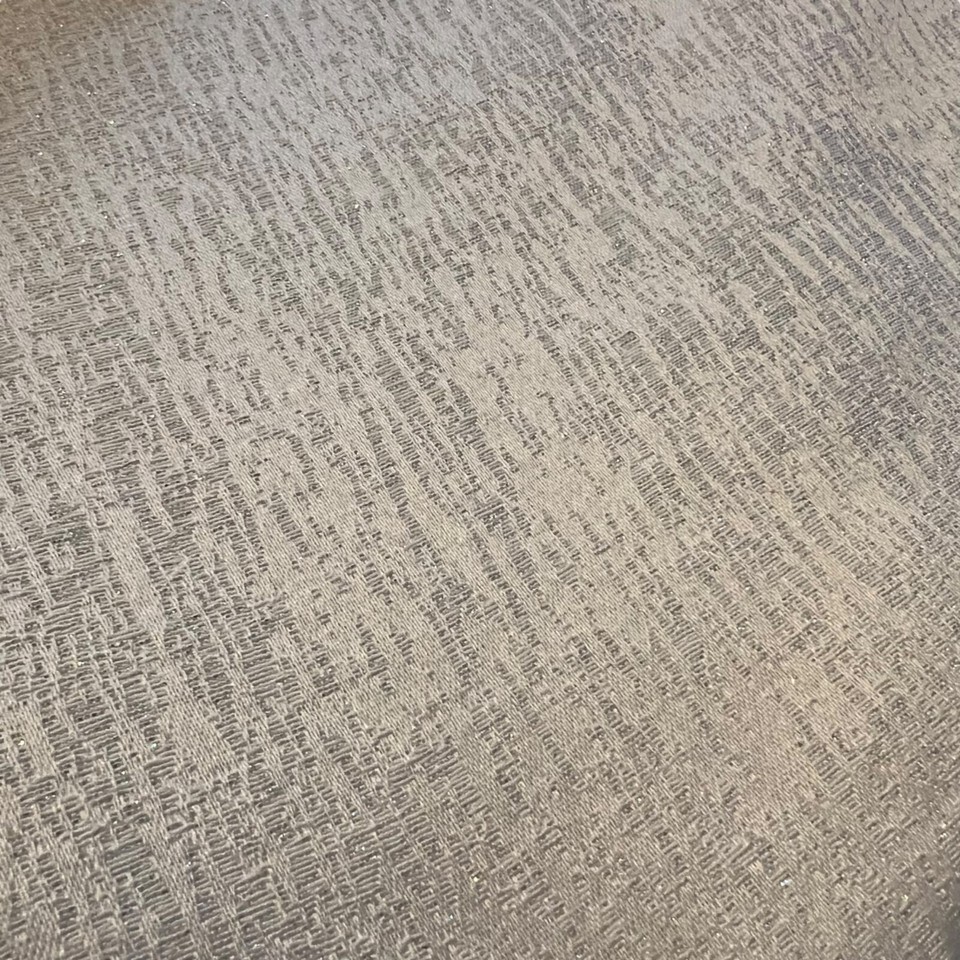 Metallic sheen enhances decor, blending elegance and texture. Neutral silver tones complement various interiors, offering a luxurious, light-filtering solution.