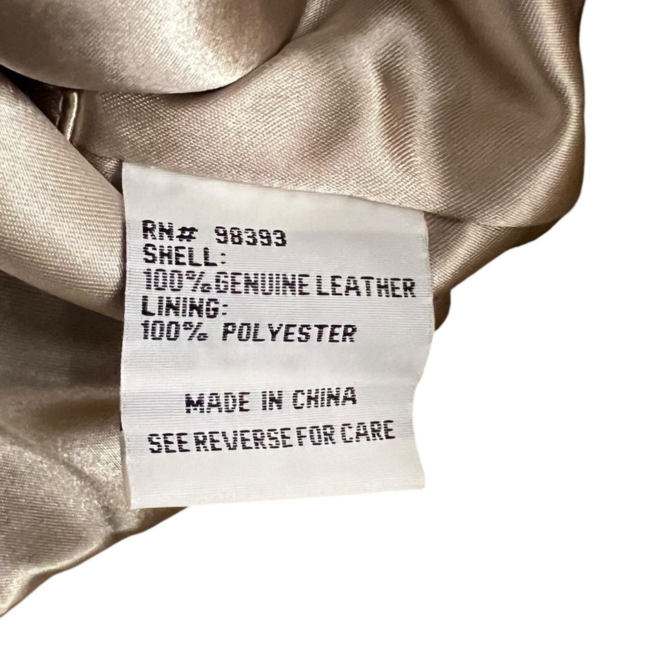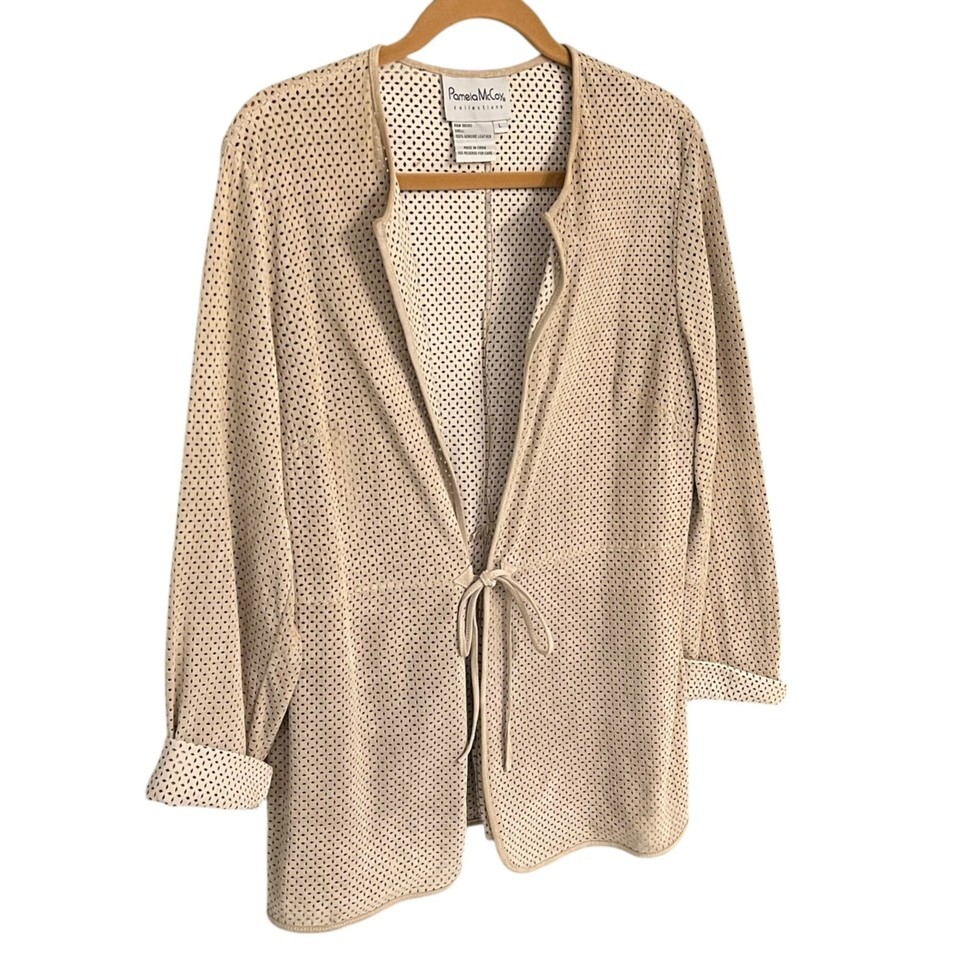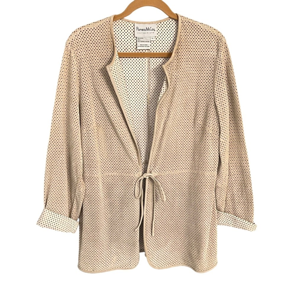Pamela McCoy Tan Genuine Leather Perforated Jacket With Tie Front Womens M