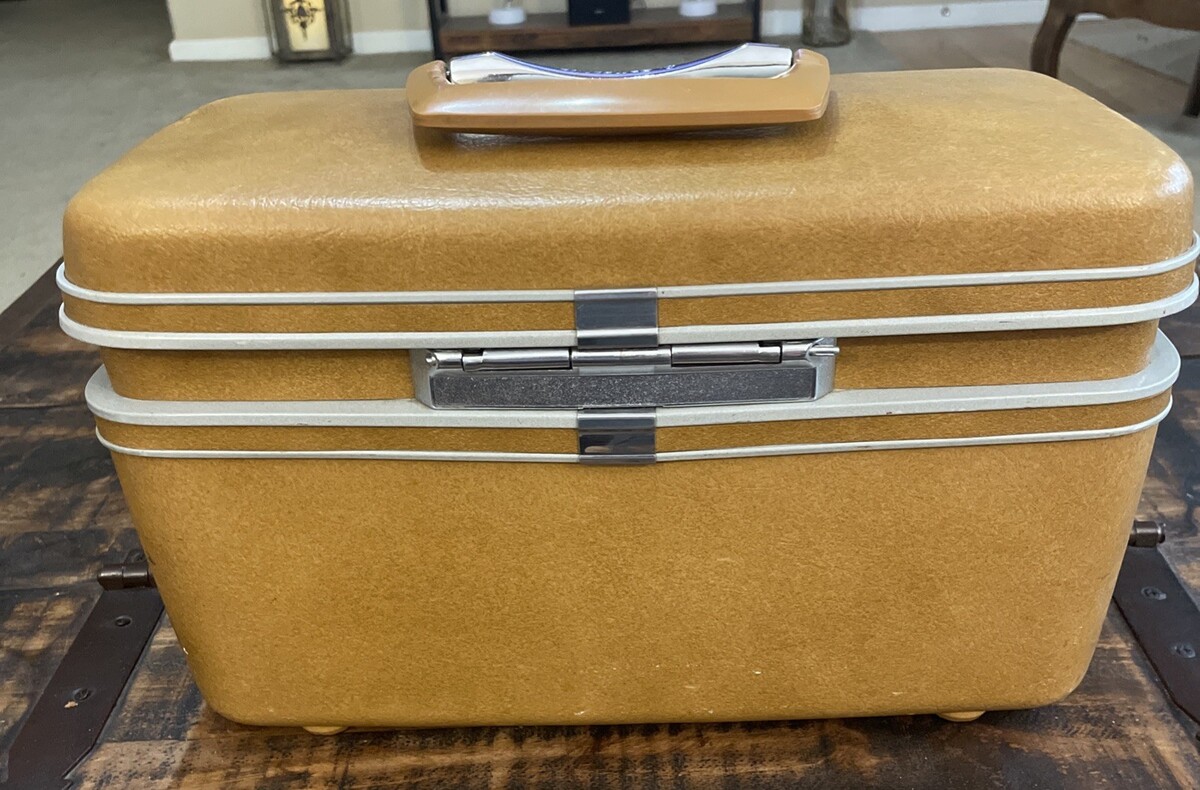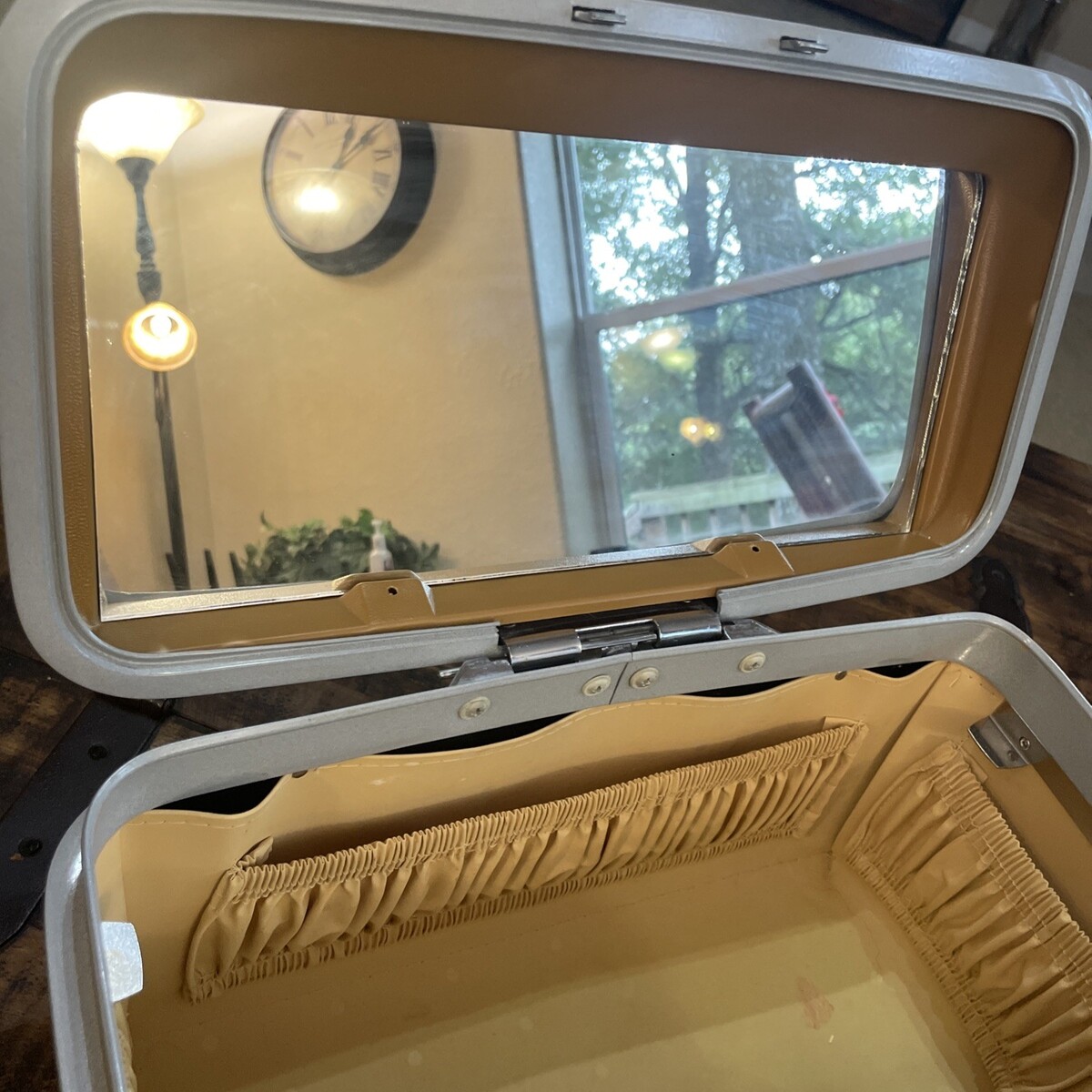 Vintage Samsonite Silhouette Beauty Case w/Mirror Tan In Color No Key