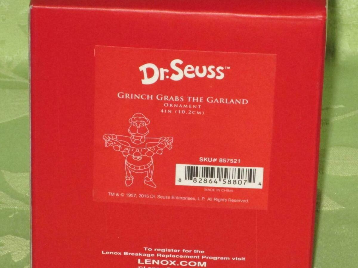 Lenox Grinch Grabs The Garland Ornament Dr. Seuss Who Stole Christmas NEW
