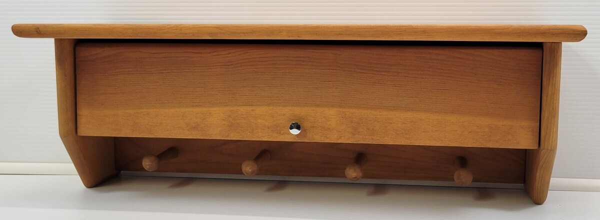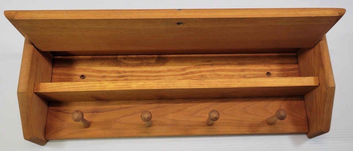 *MA) Wooden Hanging Coat Rack Pegs Hat Shelf Storage Flip Bin Country Farmhouse