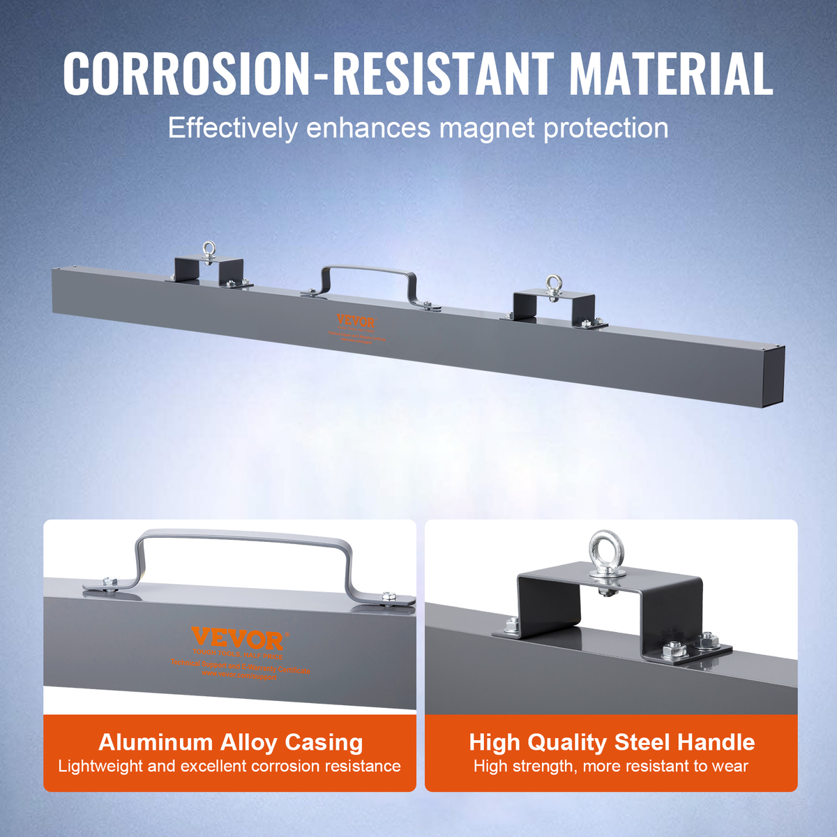 Enhanced Efficiency: The hanging magnetic sweeper boasts an improved design that ensures exceptional efficiency in its performance. Its sturdy and durable construction, featuring a heavy-duty aluminum casing and premium steel lifting handles, guarantees long-lasting use even in demanding environments.