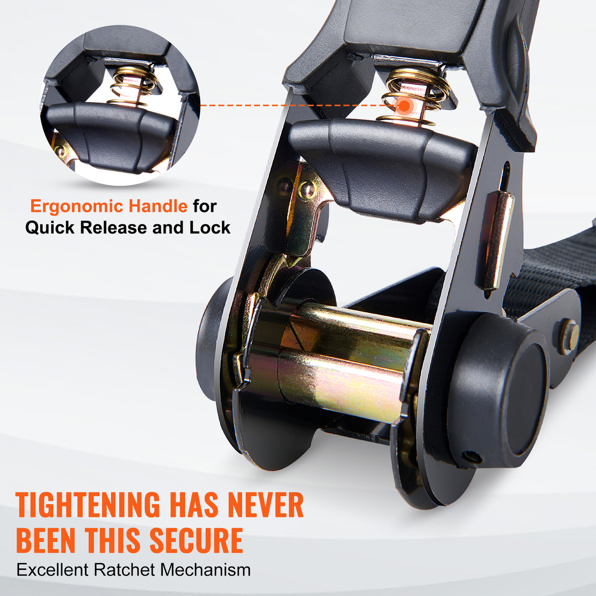 Quick Fastening: The ratchet mechanism offers excellent control, comfort, and strong grip strength. The ergonomic spring-loaded handle allows for smooth and rapid release.