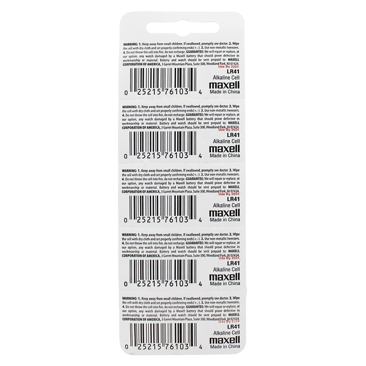 MAXELL LR41 Alkaline Battery; Head Type: Flat Top; Voltage: 1.5V; Built-in Protected Circuit; Mercury Free; Dimensions Weight: Weight 0.88 oz (25 g); Cross Reference: AG3, G3 RW87 V3GA GP92A