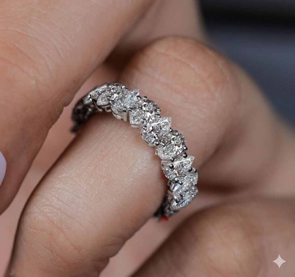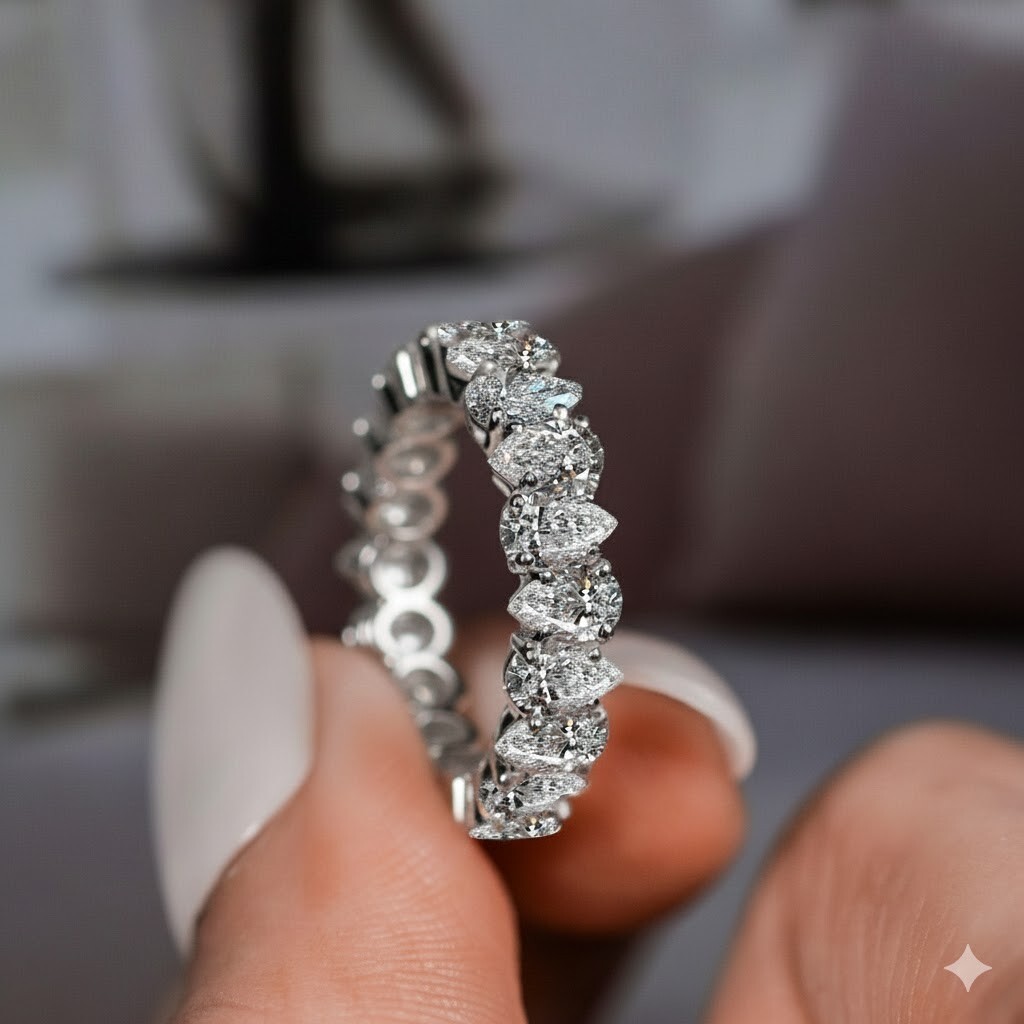 Lab Grown 4 TCW E VS1 Diamond Pear Wedding Band 5x3mm Unique Eternity Band