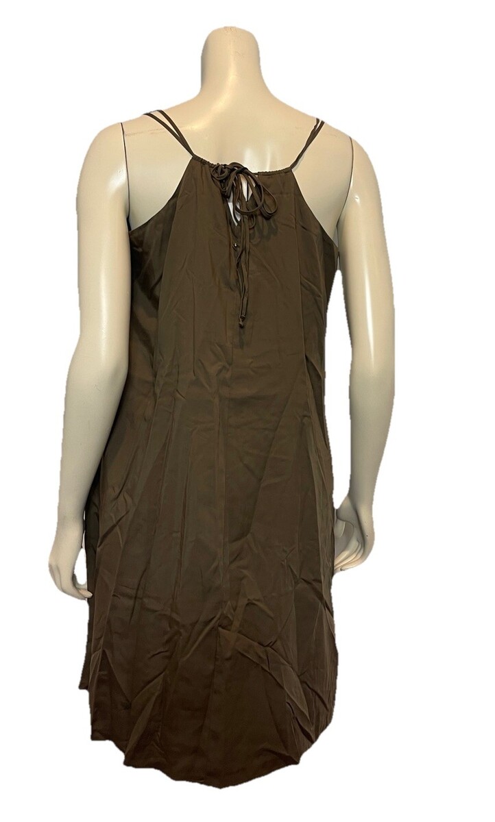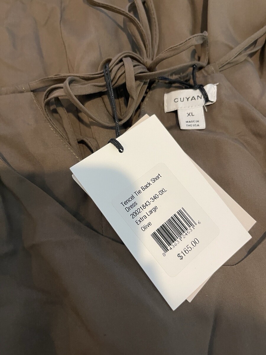 NWT Cuyana Olive Green Tencel Tie Back Short Sleeveless Dress Size XL
