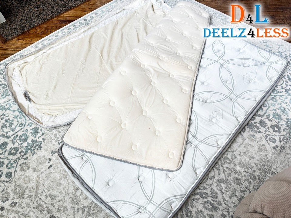 Select Comfort Sleep Number Flex Top Split Top mattress pillow top outer cover. King size (76" by 80"). Good clean condition. Please check all the pictures and make sure you are OK with them. No internal parts. Make sure your original outer cover is about the same height as we measured the one in the pic, make sure it's about 6". If yours is taller or shorter, contact us; we might have one available for you. This is not a complete bed; it has no internal parts, but we can make it complete if you like the cover and want a complete bed. Check our store for more Sleep Number items.