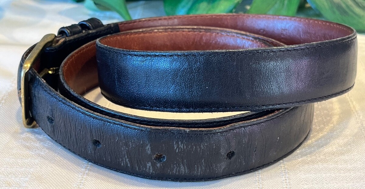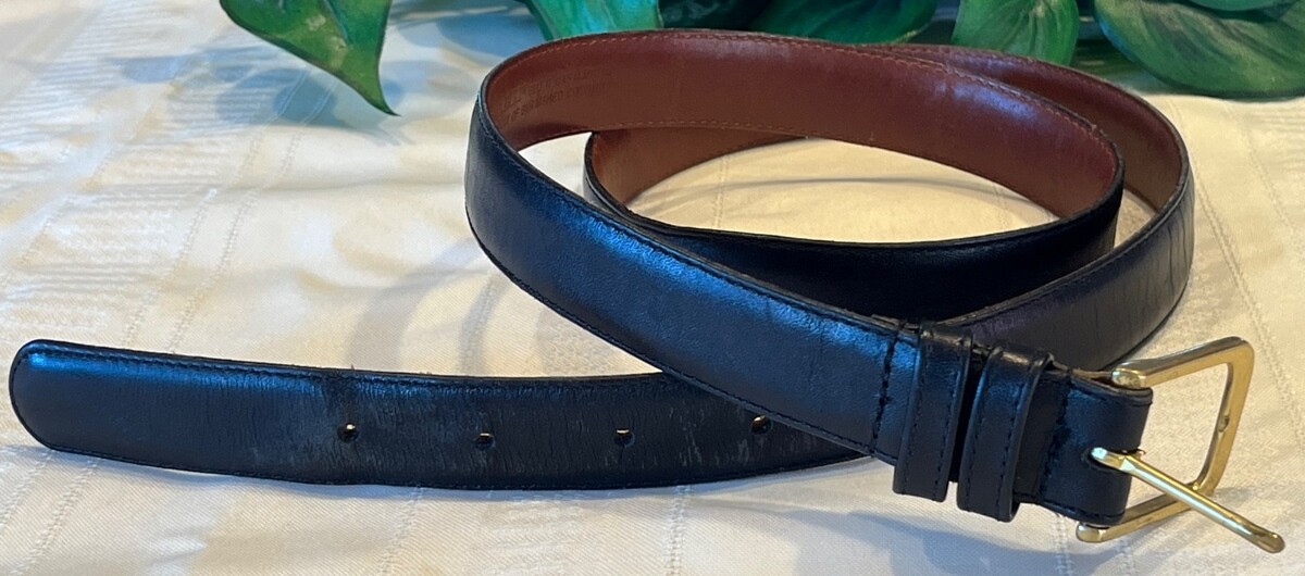 This vintage leather men's belt is in very good solid condition. It is clean, odor free and all stitching is intact. There's light color loss on the inner end of the belt as shown in picture.