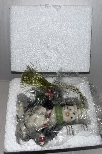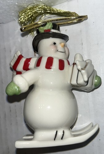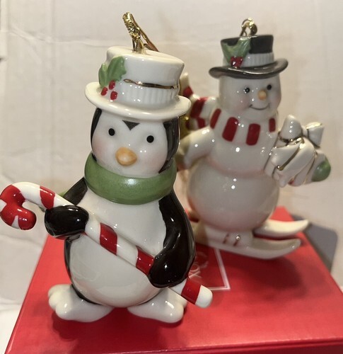 Add a touch of holiday cheer to your Christmas tree with this set of two Lenox porcelain ornaments. Featuring a cute penguin and a snowman, these small ornaments are perfect for hanging and decorating. Get ready to celebrate the holidays in style with these Lenox Christmas Ornaments! They are new and in original packaging but do have writing on box as shown in photos. Please let me know if you have any questions!