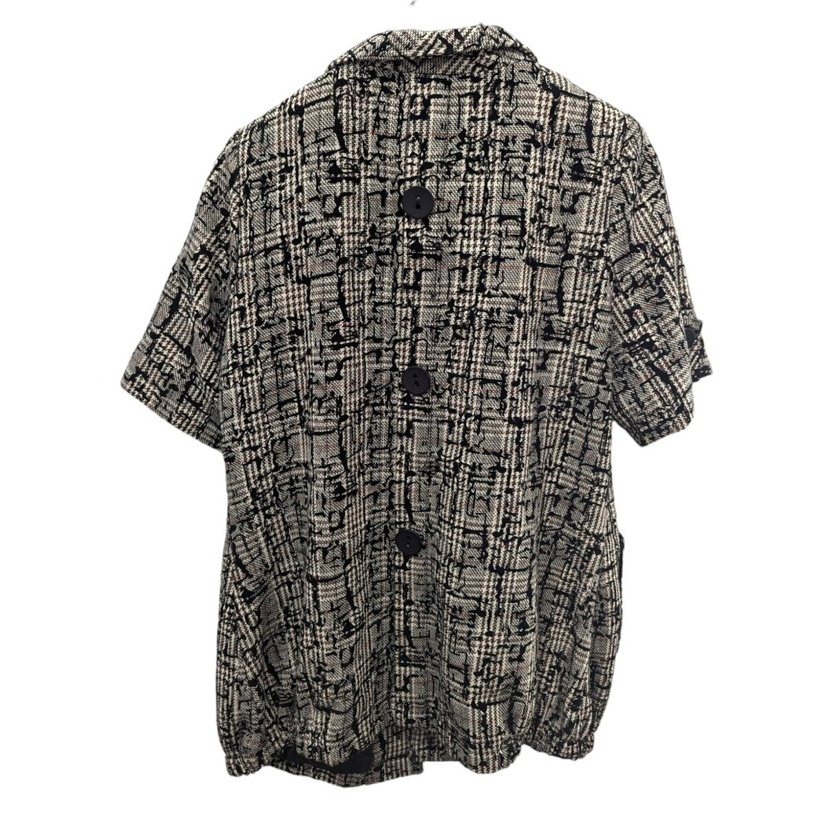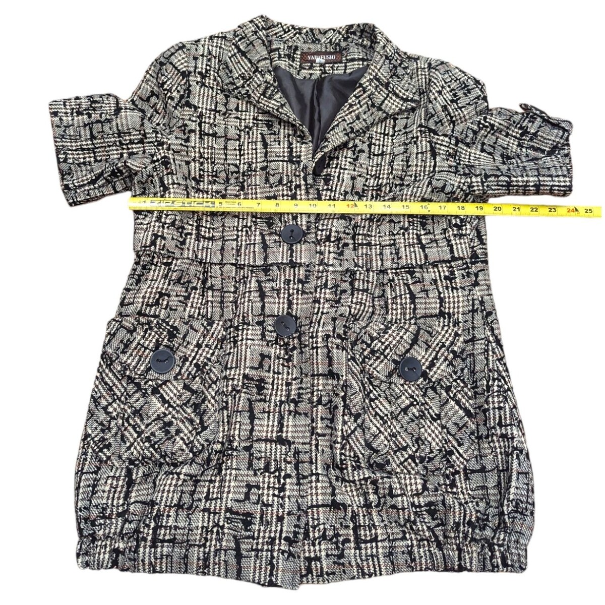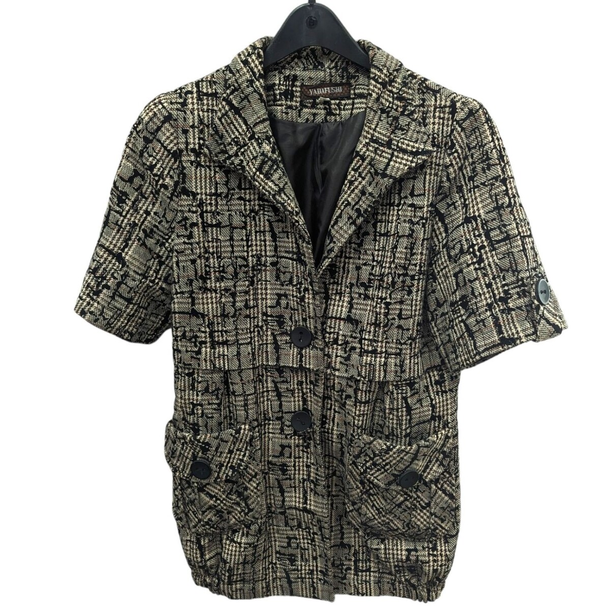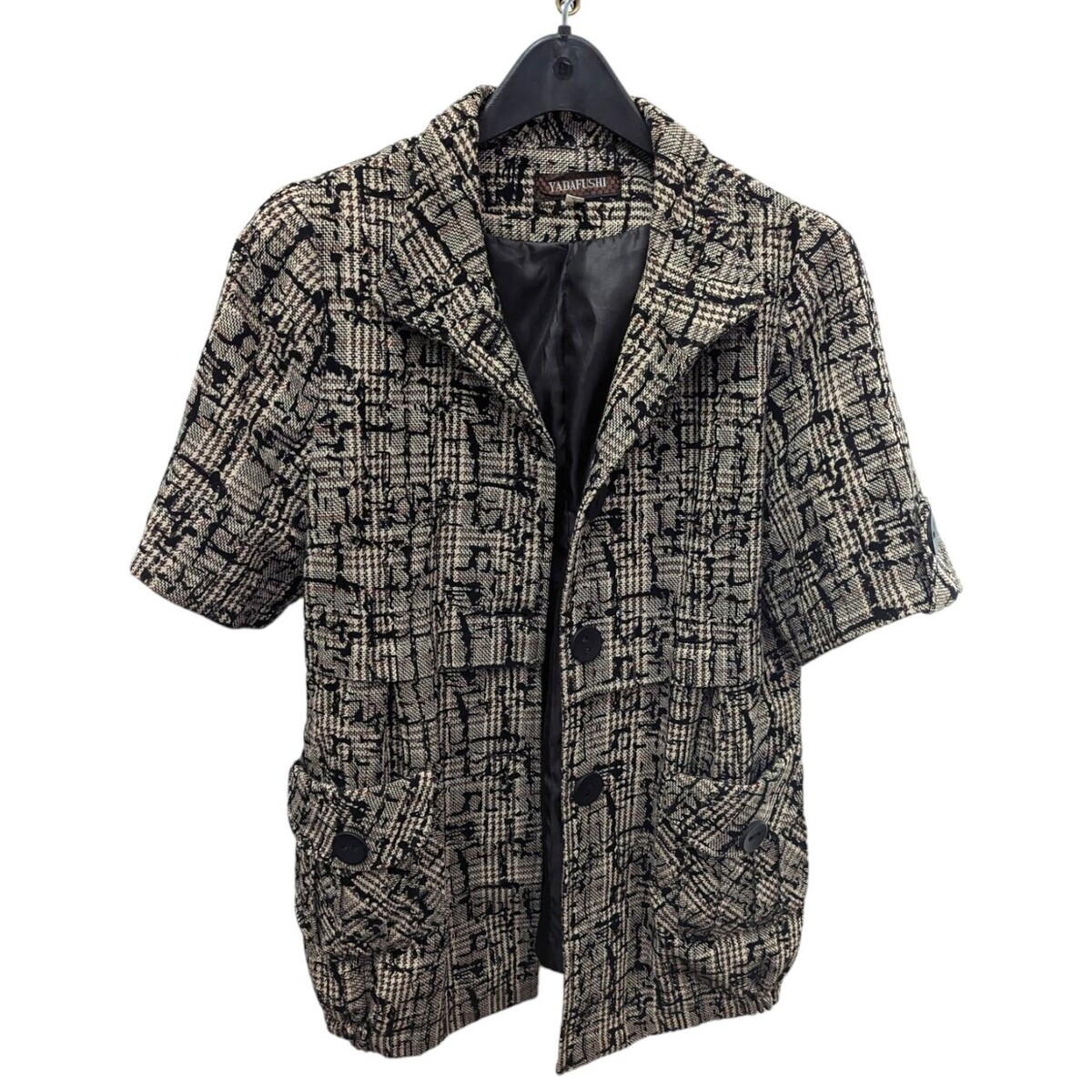 Yadafushi Tweed Blazer Jacket Button Front Pockets Lined Black Beige Size XL