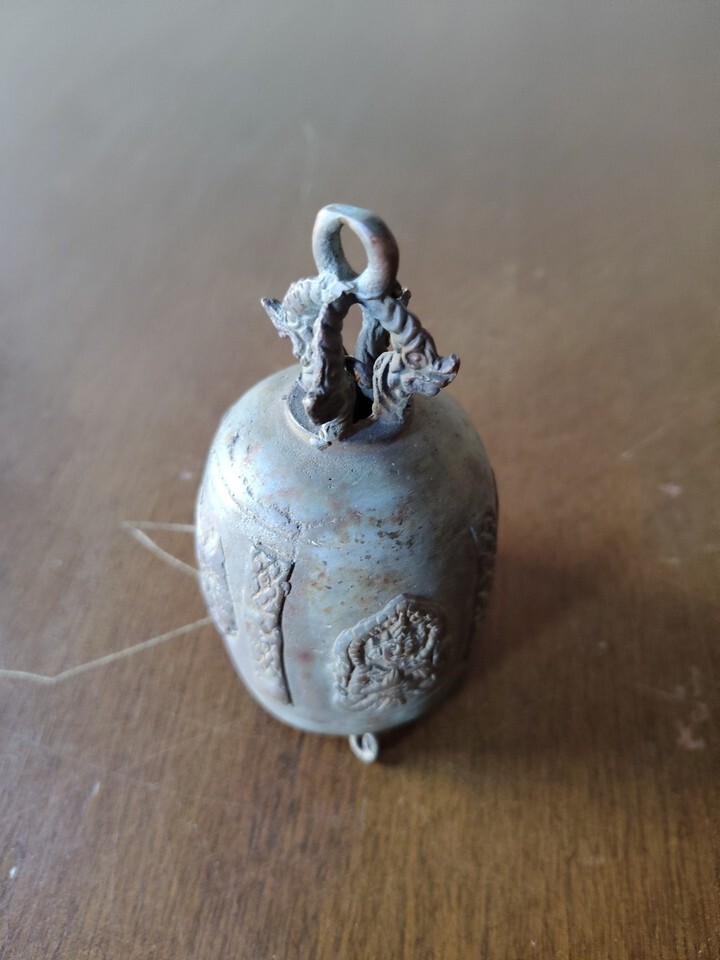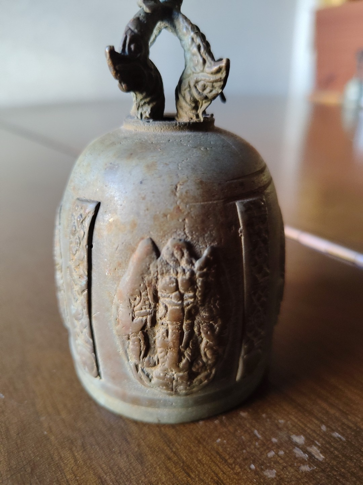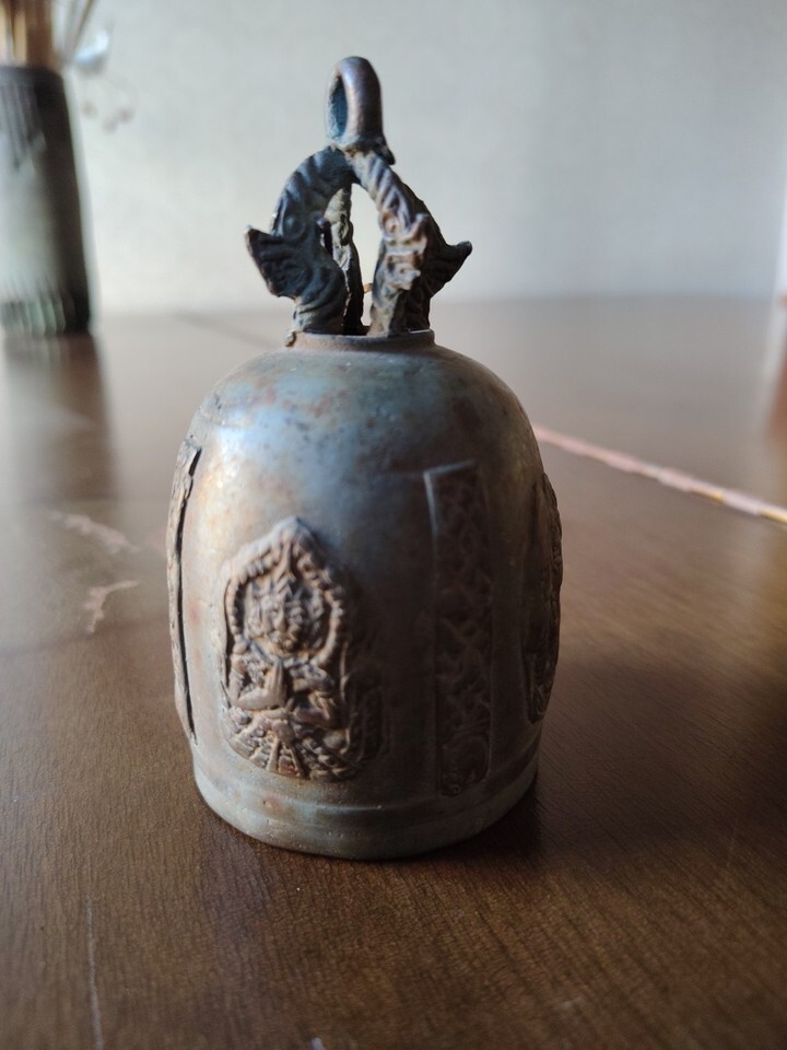 Vintage Brass Indian Hindu Temple Bell w. Reliefs of Deities 4.25”