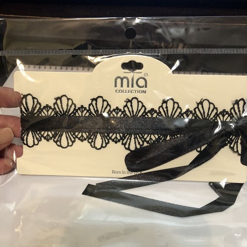Mia collection blacck lace detail chocker satin fashion statement necklace
