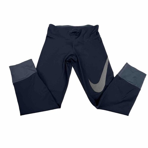 Nike Women's Dri-Fit Black Pants Gray Swish Power Capri Leggings Size XS