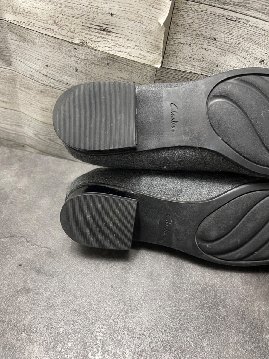 Clarks Artisan Heels Women 8 M Juliet MonteShoes Gray Felt Cap Toe Kitten Pumps