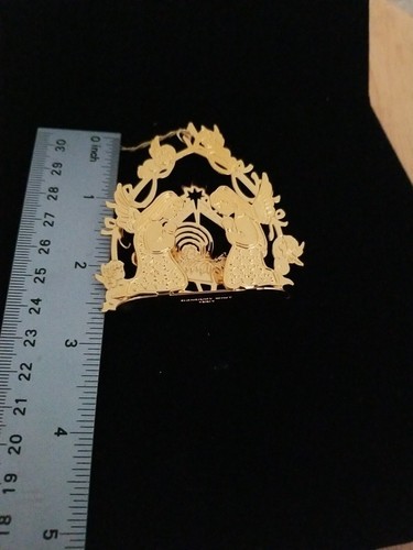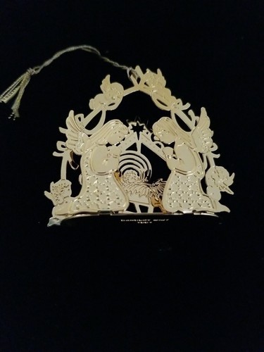 Danbury Mint Angels By The Manger Nativity Christmas Ornament 1991 Gold Toned.