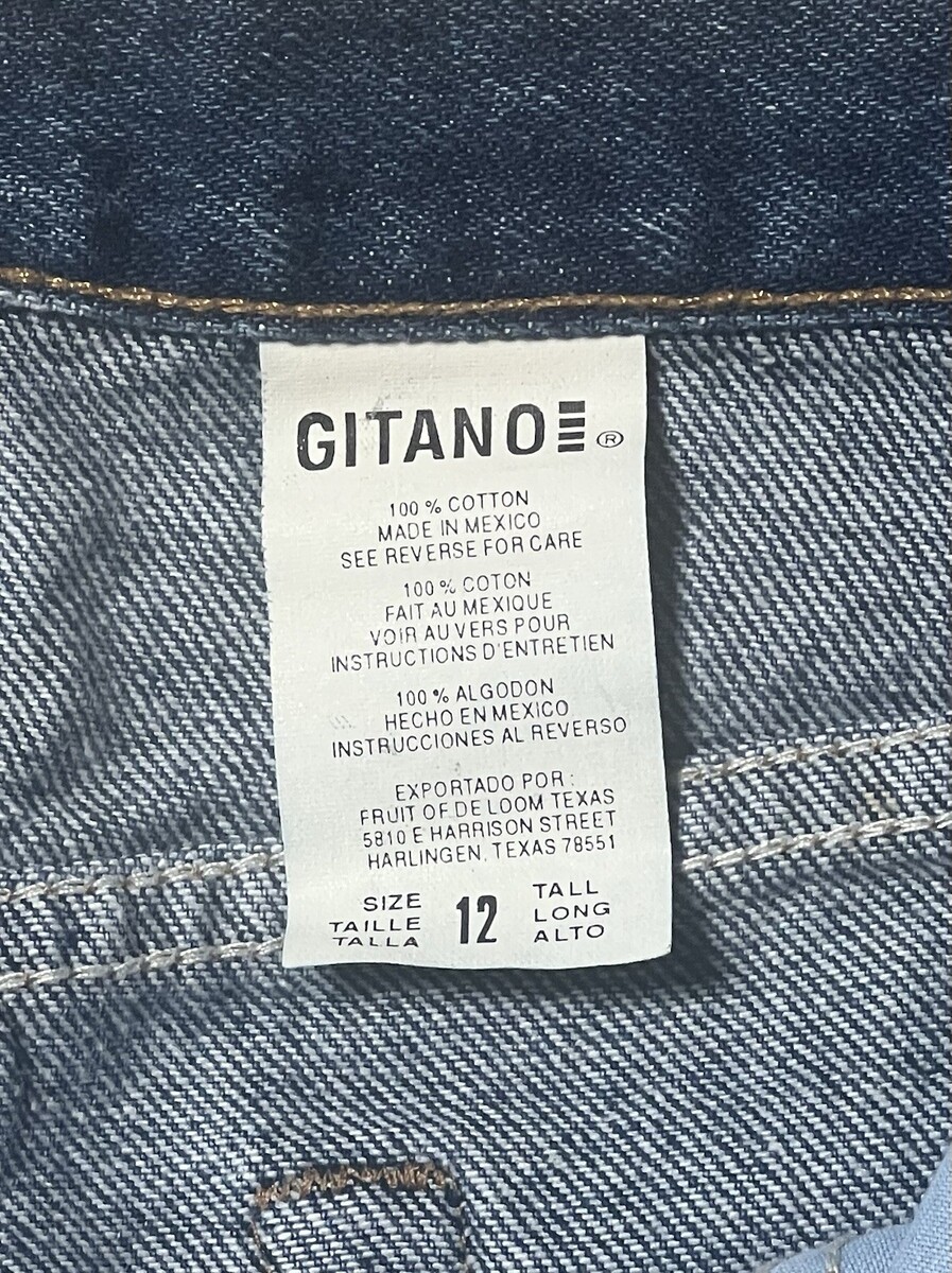 The product is a pair of Gitano jeans in a size 12 Tall, designed specifically for women who are tall. The jeans come in a classic blue color, making them a versatile and stylish addition to any wardrobe. With the Gitano brand known for quality and style, these jeans are sure to be a favorite go-to for any woman looking for a comfortable and fashionable option.