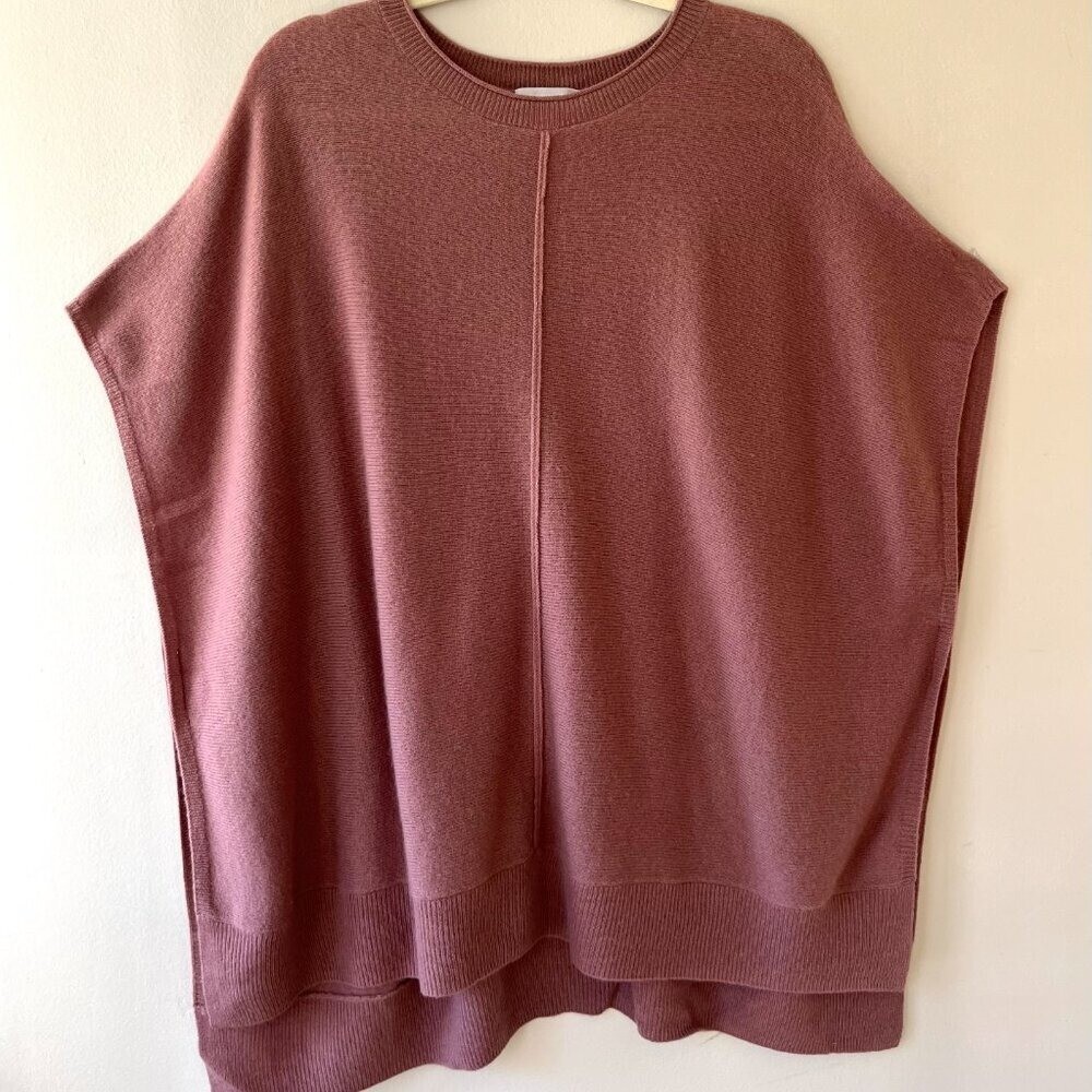 Nordstrom One Size Rib Wool Cashmere Mauve Poncho Pullover Soft Sweater Cover Up