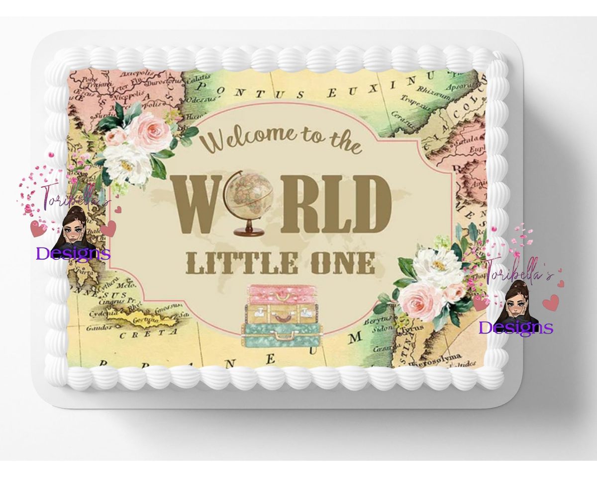 10" by 8" Welcome To The World Little One Baby Shower Adventure Begins Themed Ed