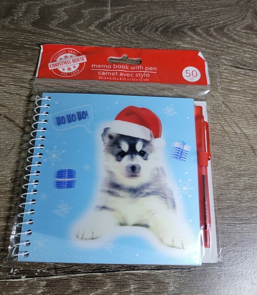 Christmas House 50 Sheets Holographic Dog Memo Book with Pen 4.75 in x 4.75. Siberian Husky. Condition is New. Shipped with USPS First Class Mail within 24 hours.