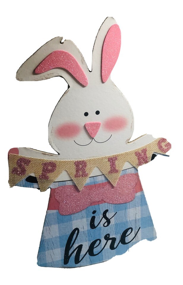 Wall Sign Glittery Colorful Hanging Bunny Decor-Spring Is Here. ShipN24Hours
