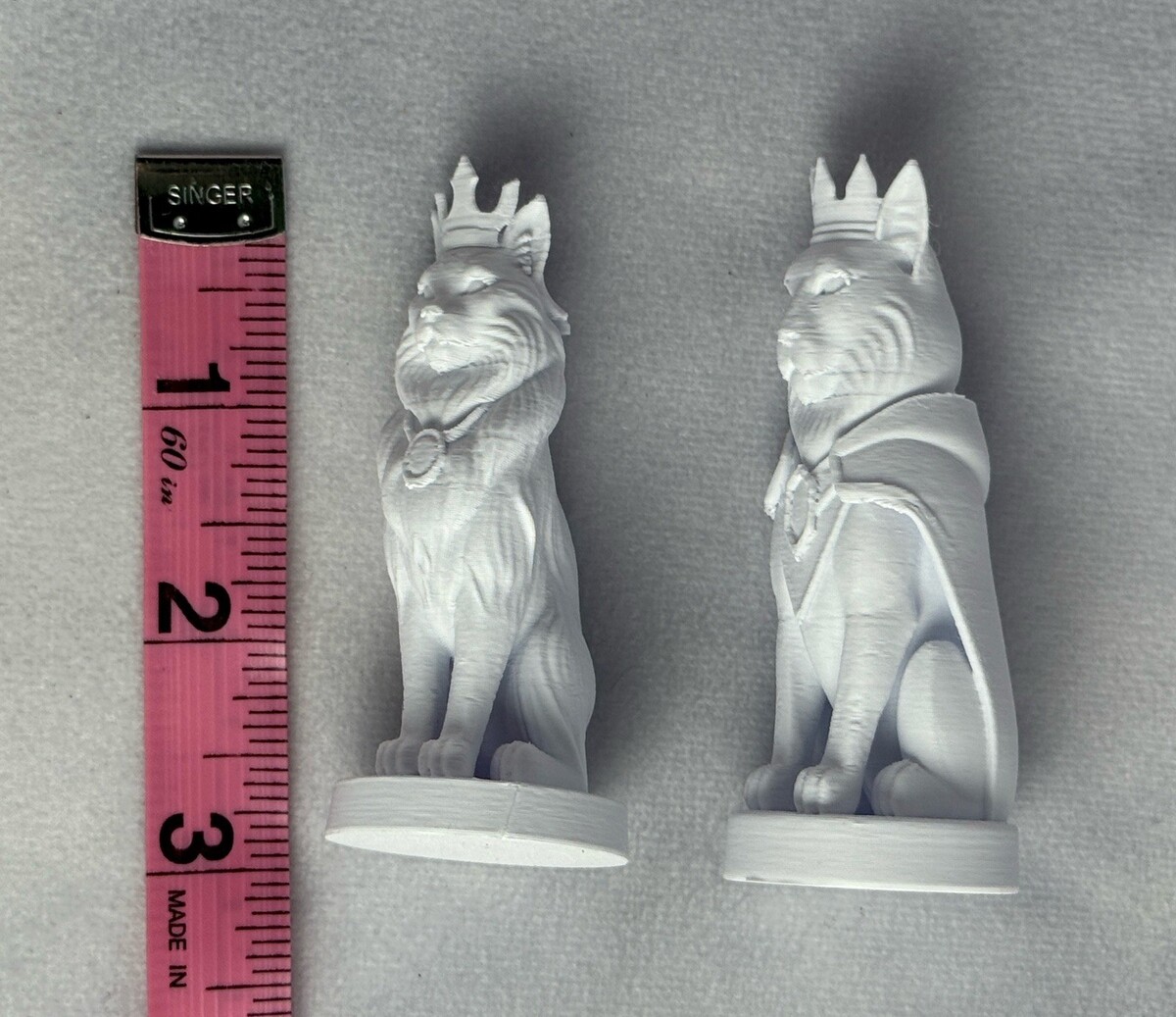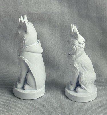 Estate sale find, lot of two cat chess pieces, plastic, probably 3D printed, as pictured, minor lines, marks, and rough spots, condition as pictured, ships within three business days.