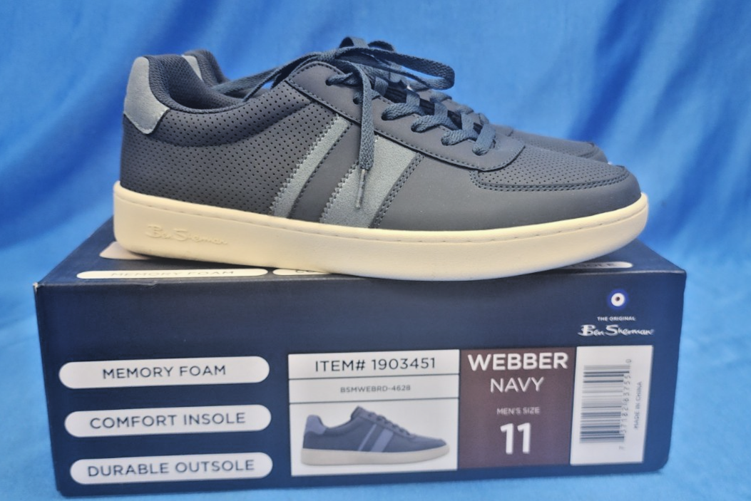 The Original Ben Sherman Webber sneakers for men in size 11 are a stylish and comfortable option for casual wear. Featuring a solid navy-blue color with a lace-up closure and round toe, these shoes are perfect for the spring, summer, and fall seasons. The memory foam insole provides added comfort, while the rubber outsole ensures durability. Made with a blend of leather and fabric, these sneakers are a fashionable choice for everyday wear from a trusted brand like Ben Sherman.