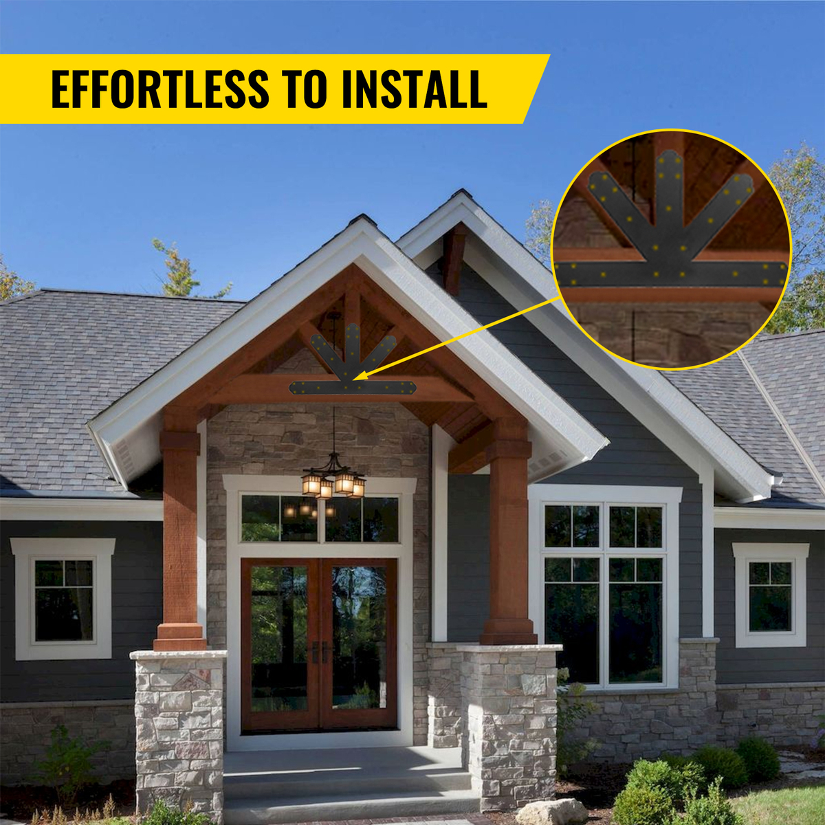 ?APPLICABLE SCENES? - This decorative gable plate's clean, concise lines not only strengthen the beam structure but also enhance the beauty of the outdoor living space. It is very suitable for application in a pergola, wooden frame, truss, and so on.