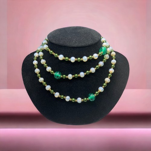 Vintage Glass Beds Pearl & Fire Opal Beads Long Necklace 46”
