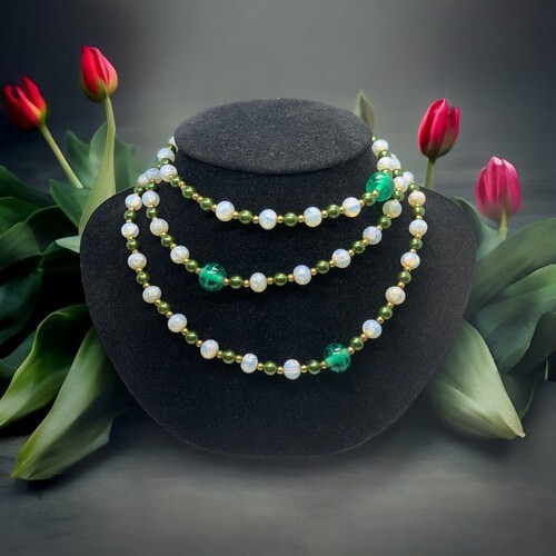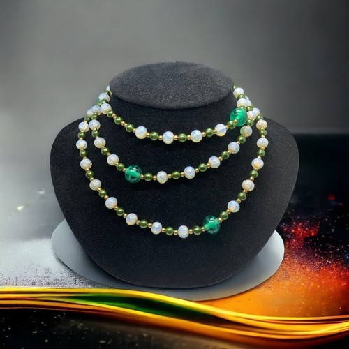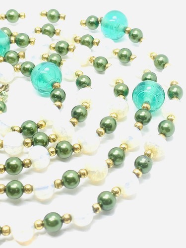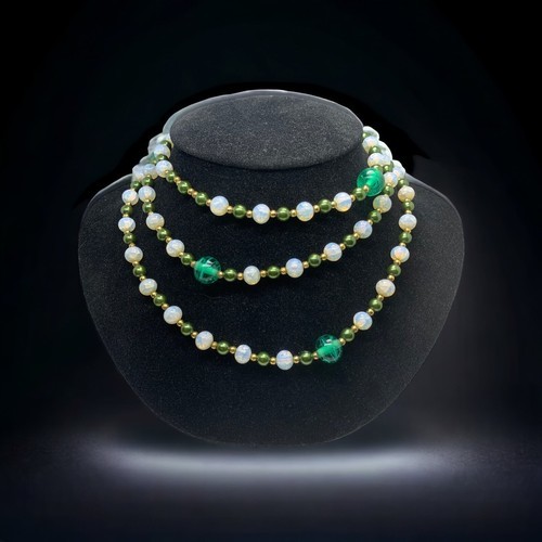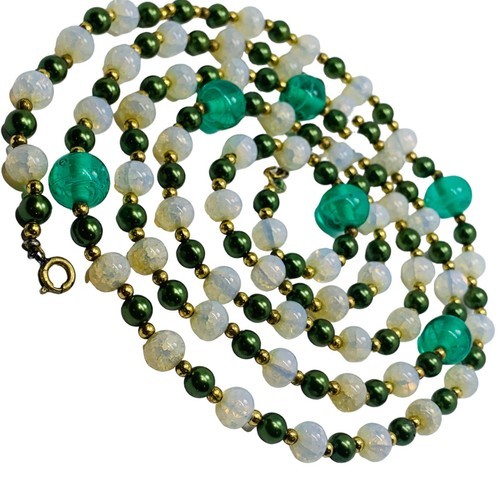 Vintage Glass Beds Pearl Fire Opal Beads Long Necklace 46?.