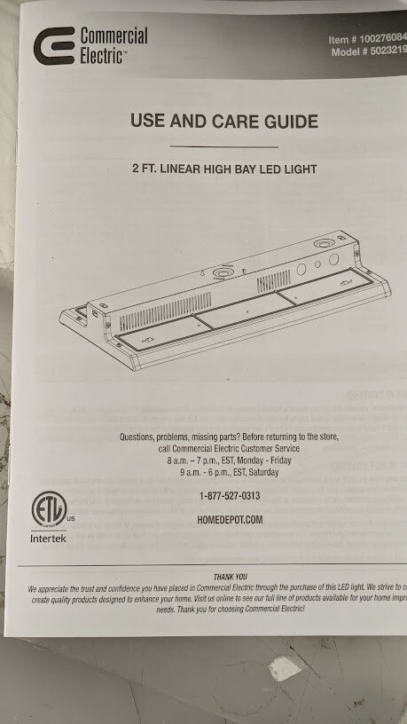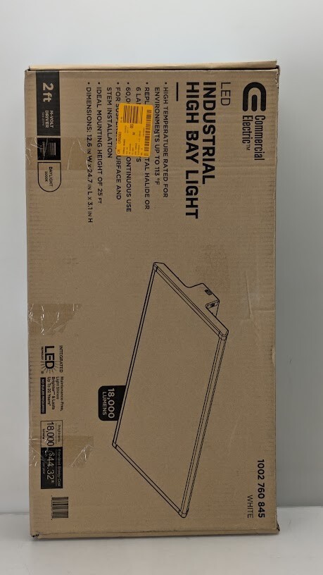 Commercial Electric 2ft. High Output Integrated LED Linear High Bay is the perfect replacement for those power-draining 400-Watt Metal Halide or T8 fluorescent tubes. Constructed of a robust durable design, it is shatter-resistant, with no hot spots and will not discolor over time. There are 3 mount options: Suspension, Surface and Stem installation. With its superior energy-efficient light engine, this high bay is maintenance free with no bulbs to replace for up to 60,000 hours of continued use. Ideal applications are large garage, shipping/receiving, warehouse and aisles, large commercial retail stores or sports facility.
