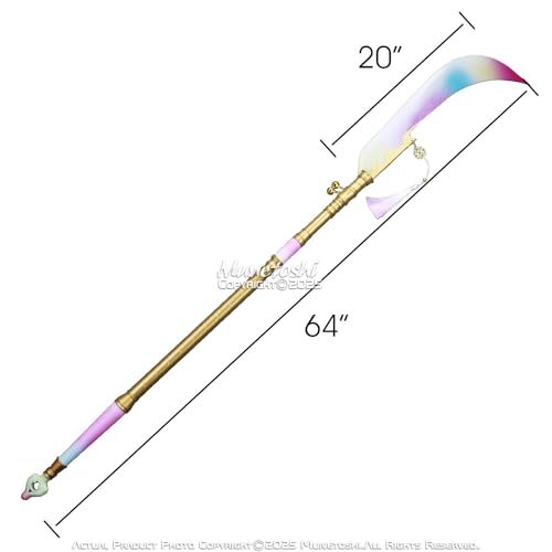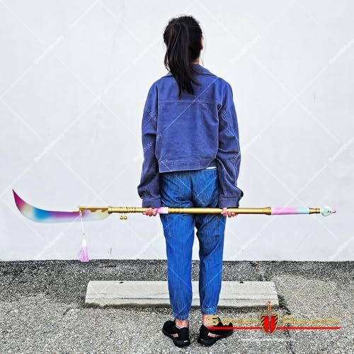 Product description: Become an Idol by day and a Hunter by night with this iconic metal recreation of Mira?s Gok-do. Show your fans how it?s done as you takedown demons to restore the golden, magical Honmoon. This metal replica is the perfect gift for collectors and avid fans alike! [DIMENSIONS] Overall Length: 64? | Blade Length: 20? | Weight: 7 lbs [MATERIALS] Embody the magic of the mudang to cut away misfortune with this ceremonial tool made fully of high quality metal [DECORATION] This faithful recreation is the perfect centerpiece for avid fans and k-pop stans alike [WHAT IT SOUNDS LIKE] Use your inner spirit magic with this faithful replica to protect the world and look cute while doing so [QUALITY] All our products are made of the finest materials, and are packaged securely and safely in our own warehouse