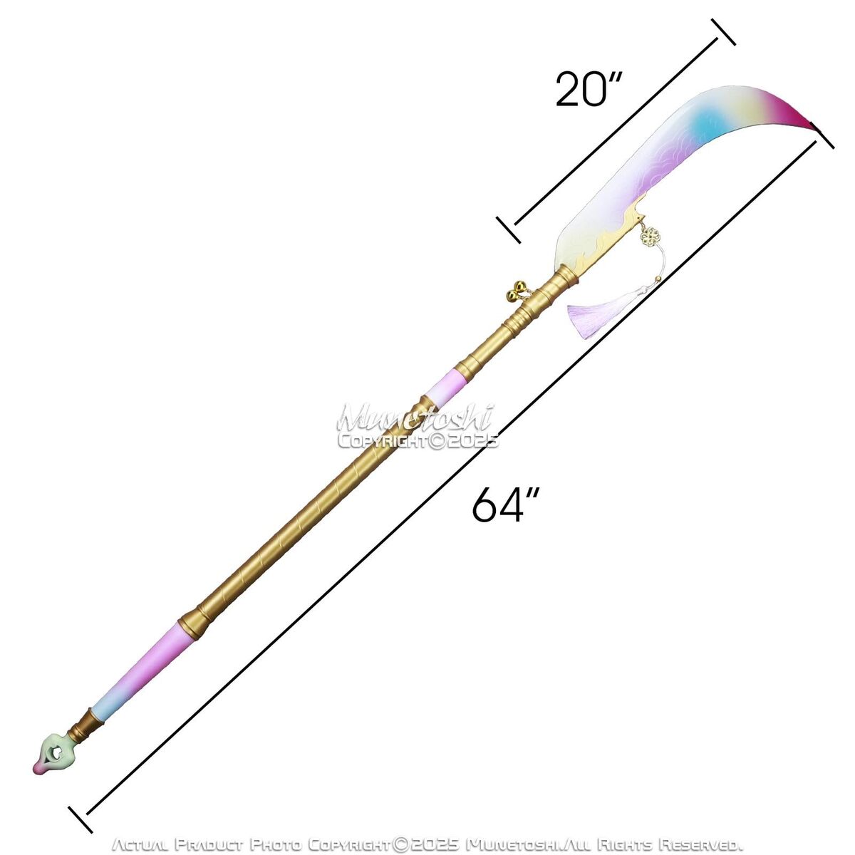 Become an Idol by day and a Hunter by night with this iconic metal recreation of Mira?s Gok-do. Show your fans how it?s done as you takedown demons to restore the golden, magical Honmoon. This metal replica is the perfect gift for collectors and avid fans alike! [DIMENSIONS] Overall Length: 64? | Blade Length: 20? | Weight: 7 lbs [MATERIALS] Embody the magic of the mudang to cut away misfortune with this ceremonial tool made fully of high quality metal [DECORATION] This faithful recreation is the perfect centerpiece for avid fans and k-pop stans alike [WHAT IT SOUNDS LIKE] Use your inner spirit magic with this faithful replica to protect the world and look cute while doing so [QUALITY] All our products are made of the finest materials, and are packaged securely and safely in our own warehouse