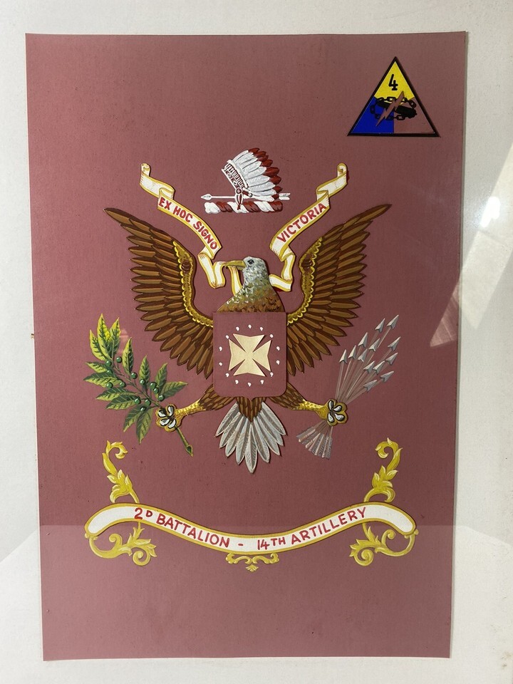 Up for sell is a Vintage 2nd Battalion 14 Artillery Regiment Framed Custom Wall Decor