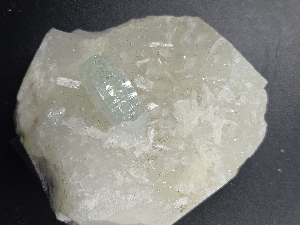 Natural Green Apophyllite on White Chalcedony/Quartz Matrix With Small Stilbites