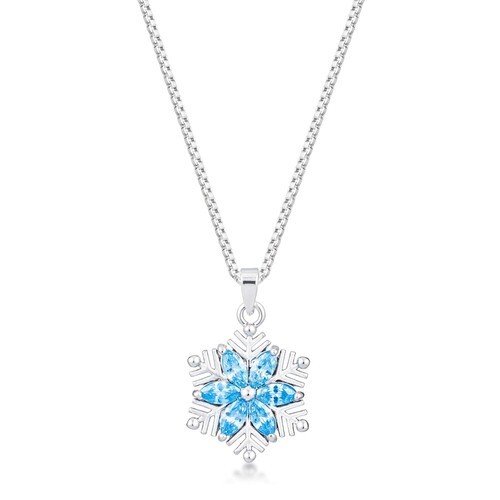 Rhodium Plated Brilliant Marquise Aqua Blue Snowflake Pendant
