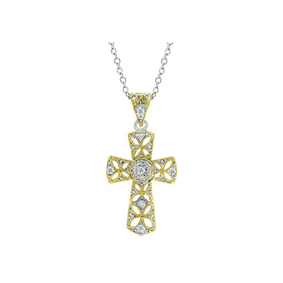 The Veiled Cross Pendant is a gorgeous choice that will compliment the wearer. It offers a little bit of glitz that adds luster to the gold charm. Our two-tone and tri-tone process use 18k gold that electroplated coating the item with heavy layers of 18k yellow gold giving it that 14k hamiliton gold polished look. The silver tone is achieved by applying a heavy coating of genuine rhodium to the item giving is a lustrous silver tone high polish. Details: