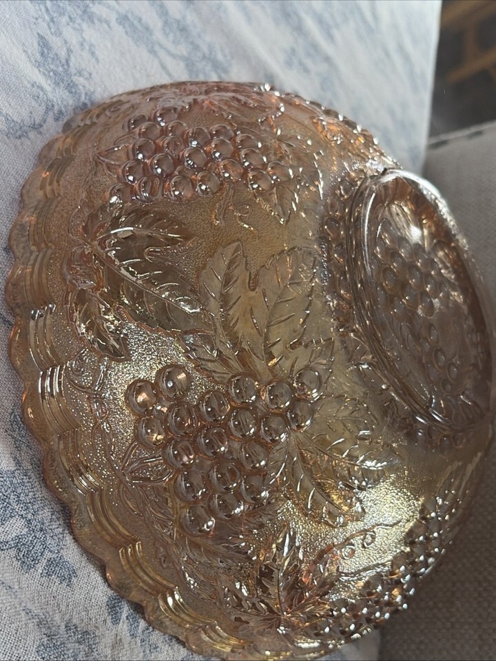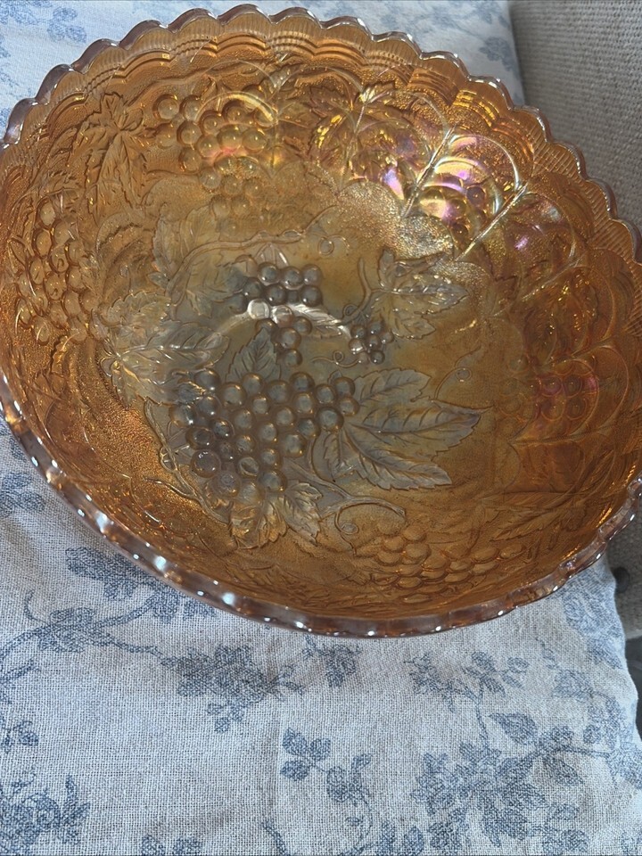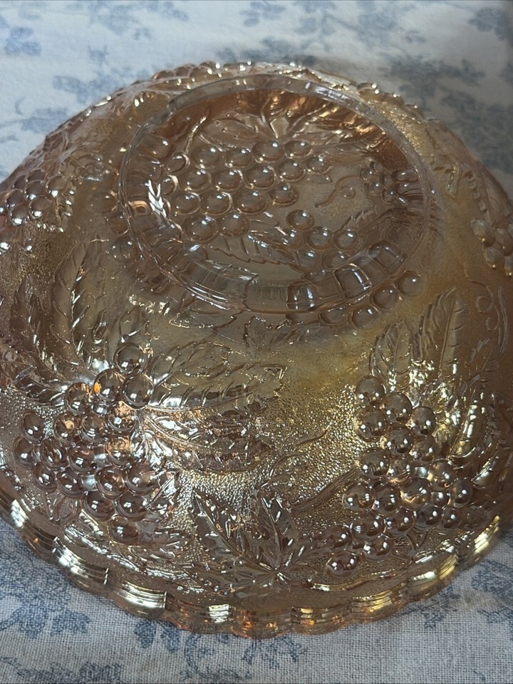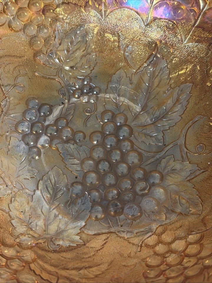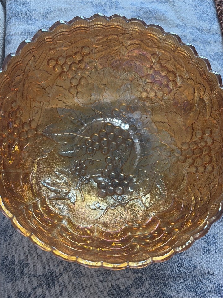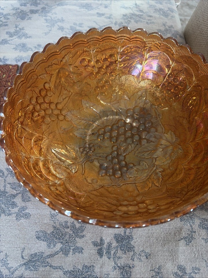 Vintage Imperial Marigold Carnival Glass Punch Bowl Grapes Pattern 9" width