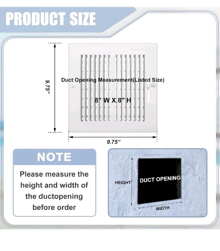 4 Qty Air Ceiling Vent Cover Grille 8"w x 8"h Duct Opening Size, 9.75x9.75 Outer