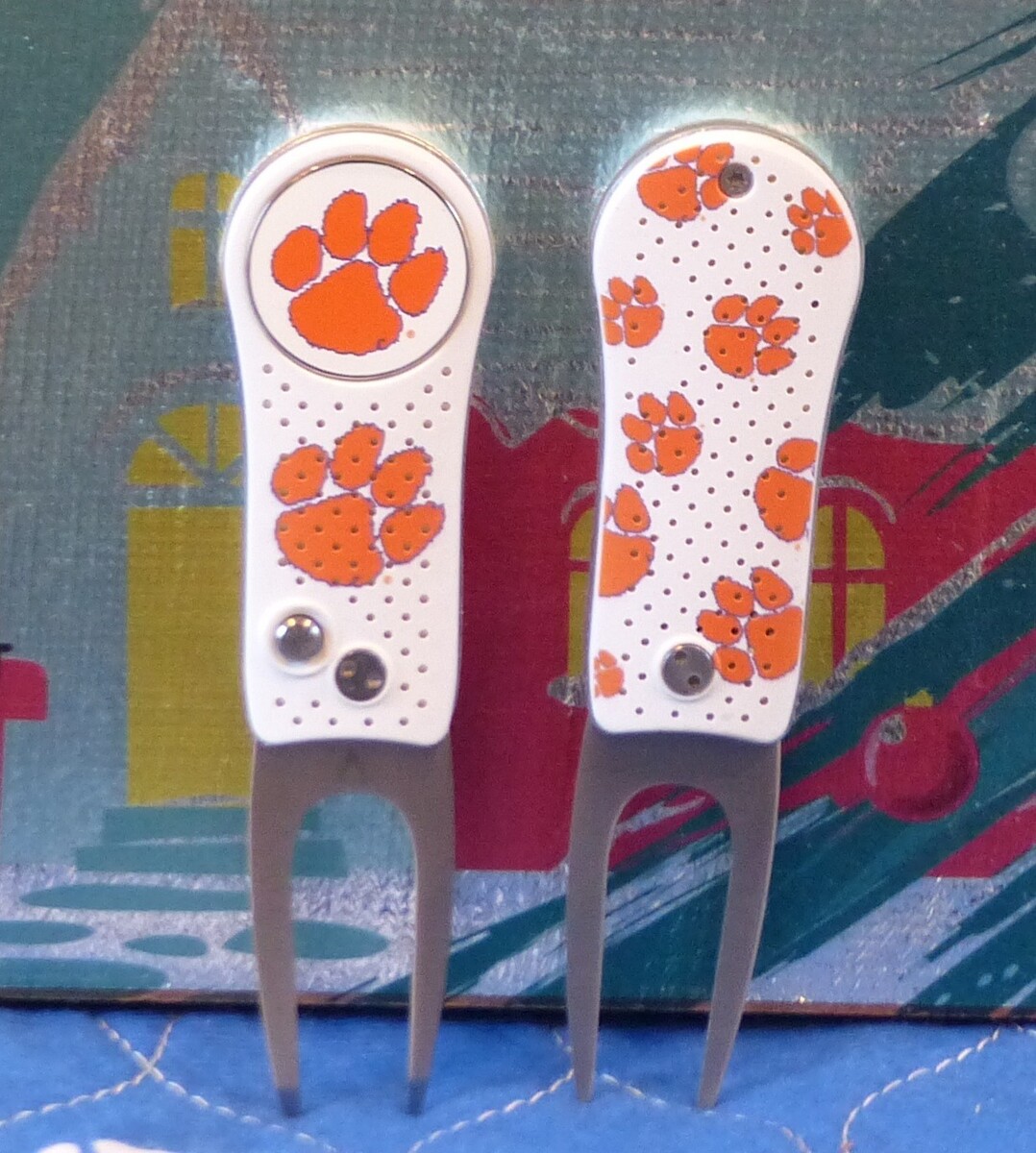 Clemson University Orange Ahead White Divot Tool - Beautiful Logo on both sides
