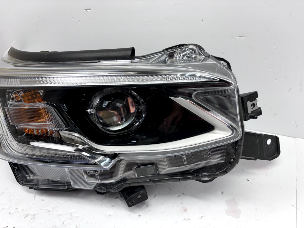 OEM Front Right LED Headlight for 2020-2022 Subaru Legacy. This is a used genuine Subaru headlight assembly designed for the passenger side. The black housing with a clear LED lens delivers bright, efficient illumination and maintains a factory appearance.