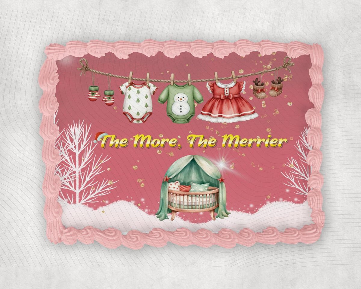 10" by 8" The More, The Merrier Christmas Themed Edible Image Baby Shower Cake T