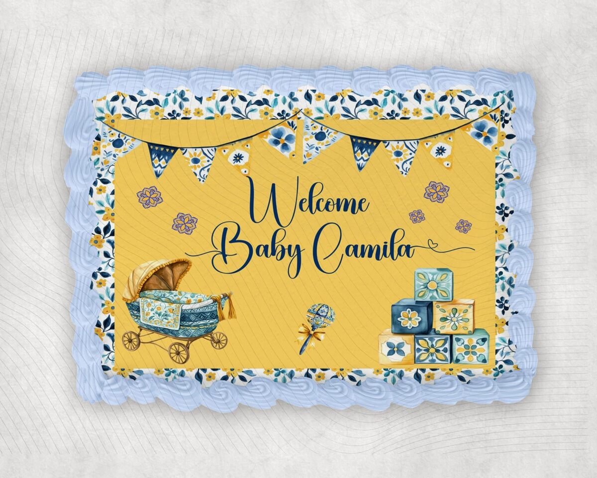 10" by 8" Talavera Design Themed Latin Amaerican Edible Image Baby Shower Cake T