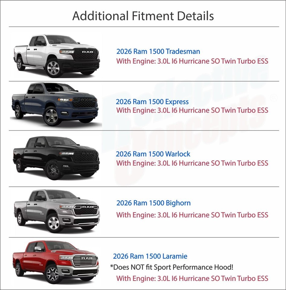 DOES NOT FIT the Sport Performance Hood, which is an option on some Laramie packages.