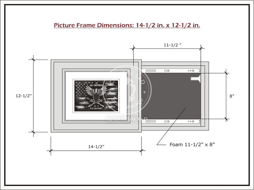 Hidden Storage Photo Frame for Gun and Valuables 14-1/2" x 12-1/2" / Black