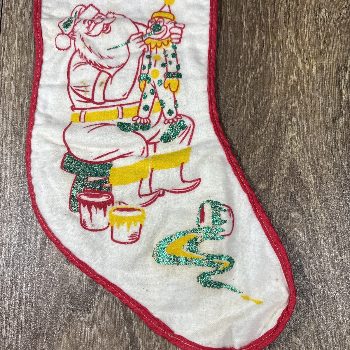 This vintage handmade cloth fabric Christmas holiday stocking is a unique and charming collectible perfect for adding a touch of nostalgia to your holiday decor. The white stocking is made from high-quality cloth and fabric materials, featuring a classic Christmas theme that is sure to warm up your home during the festive season. With its vintage design and handmade craftsmanship, this stocking is a special addition to any Christmas collection, representing the true spirit of the holiday season.
