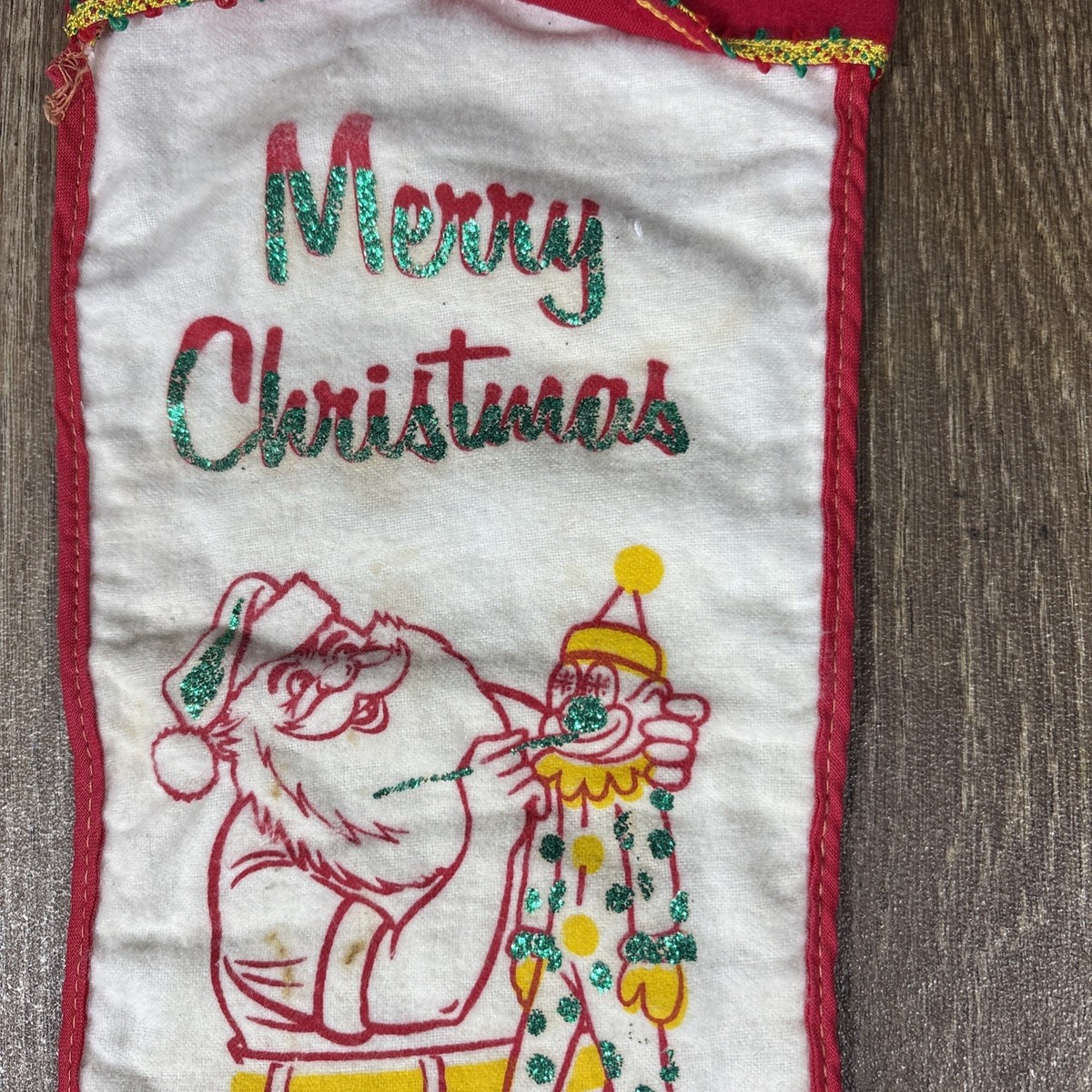 Vintage Handmade Cloth Fabric Christmas Holiday Stocking