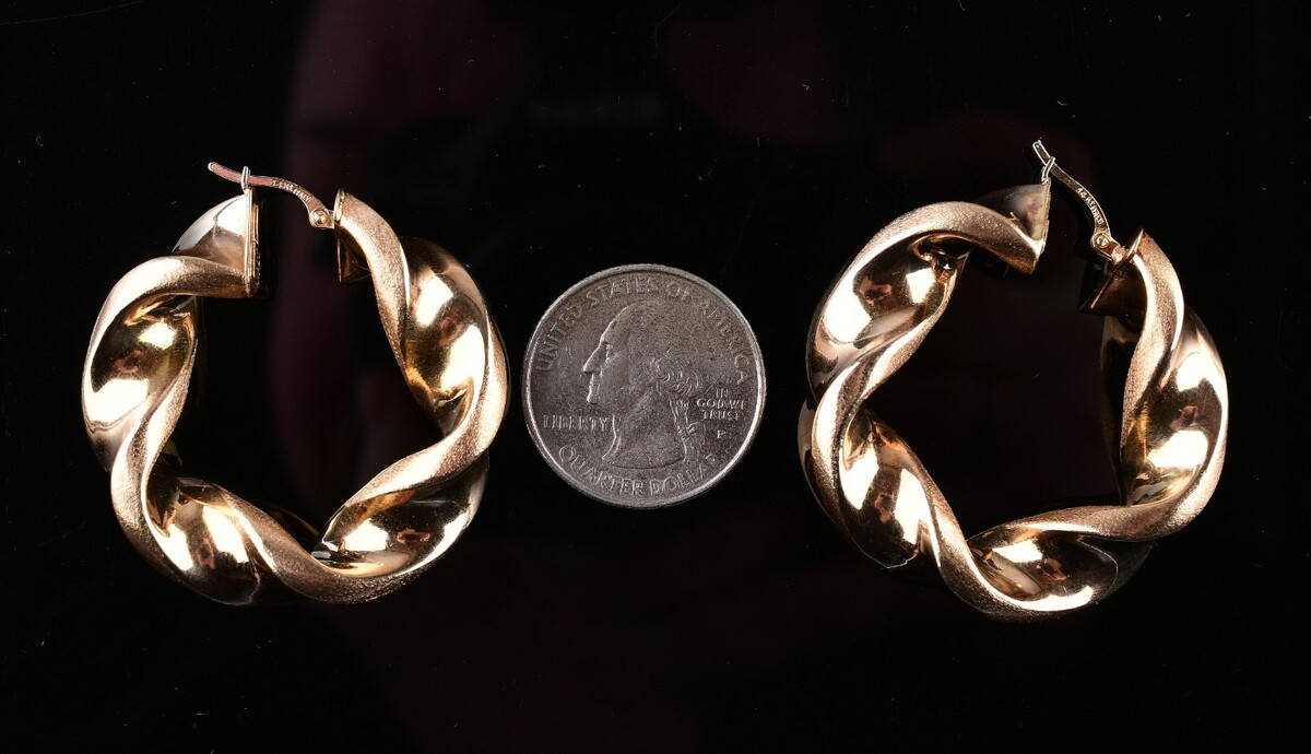 *14K Hollow Yellow Gold Round Twisted Hoop Earrings 1-5/8"