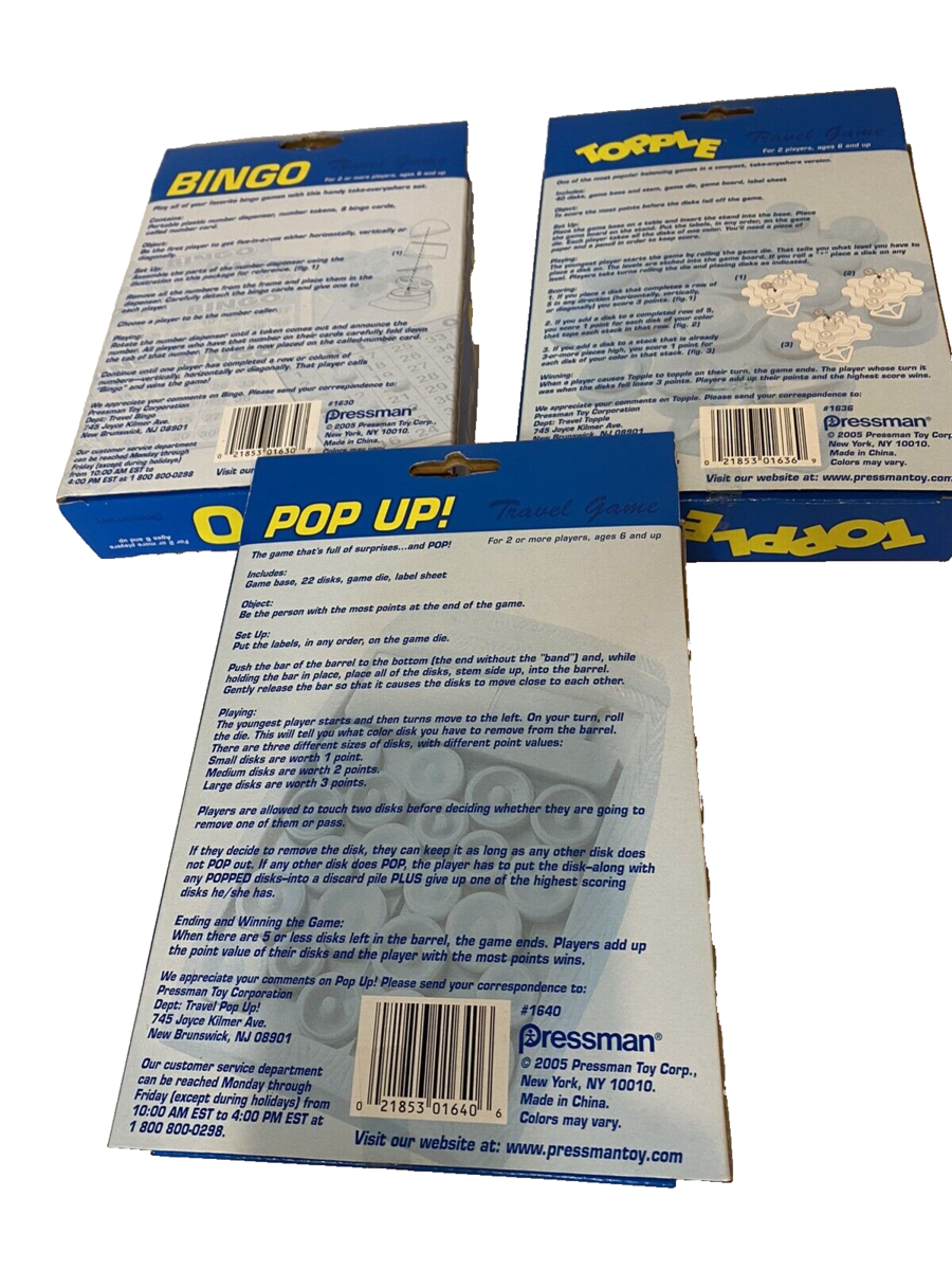 Pressman Travel Games Lot of 3: Bingo, Pop and 22 similar items