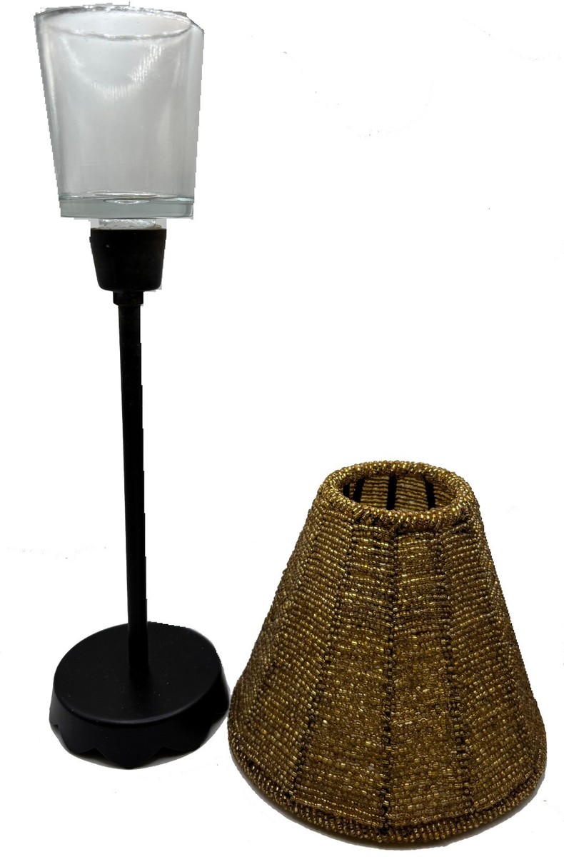 Candle Holder Lamp with Brass and Silver Shade - for Tabletop